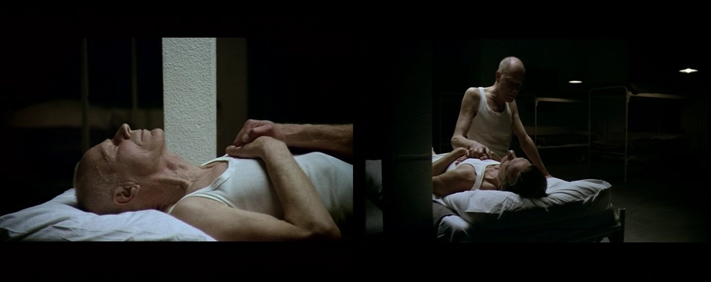 Een verstilde choreografie waarin twee mannen om een bed bewegen.